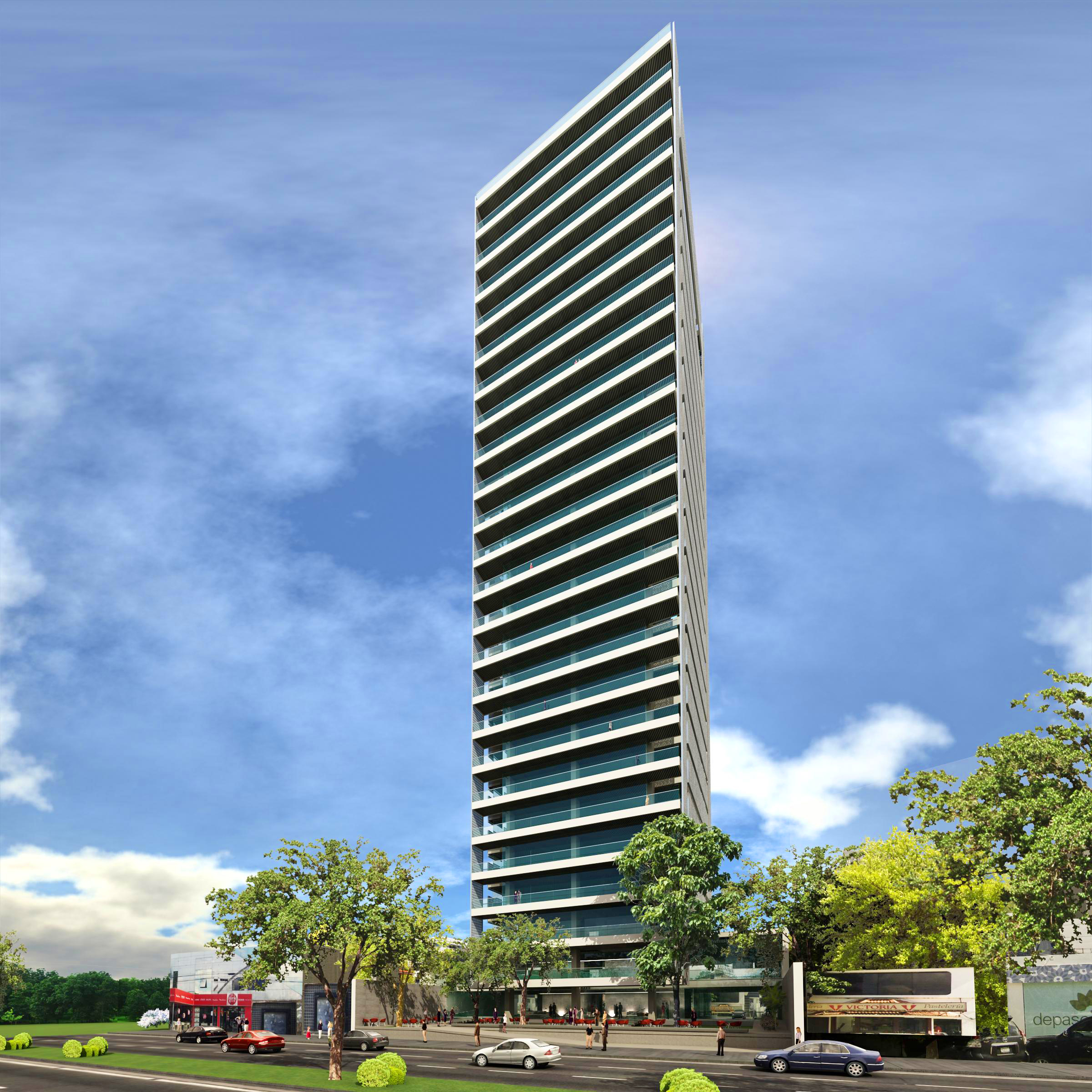 Es una imponente edificación, con un diseño monumental y de gran impacto urbano, con 27 niveles (25 platas y 2 Subsuelos de estacionamiento), ubicada en la avenida San Martin del barrio Equipetrol. La obra tiene un área de construcción de 26.480.00 m2, en una superficie de terreno de 3.000.00m2.